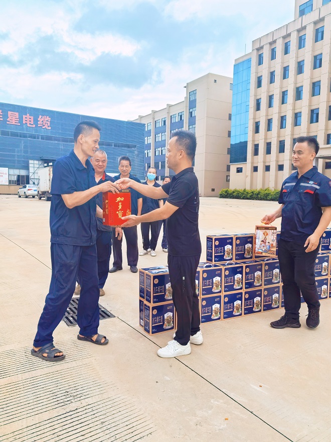 总工会领导一行深入生产一线,为高温下坚守岗位的员工送去防暑降温物资,包括清凉饮料、牛奶等,并叮嘱大家注意劳逸结合,做好防暑措施。